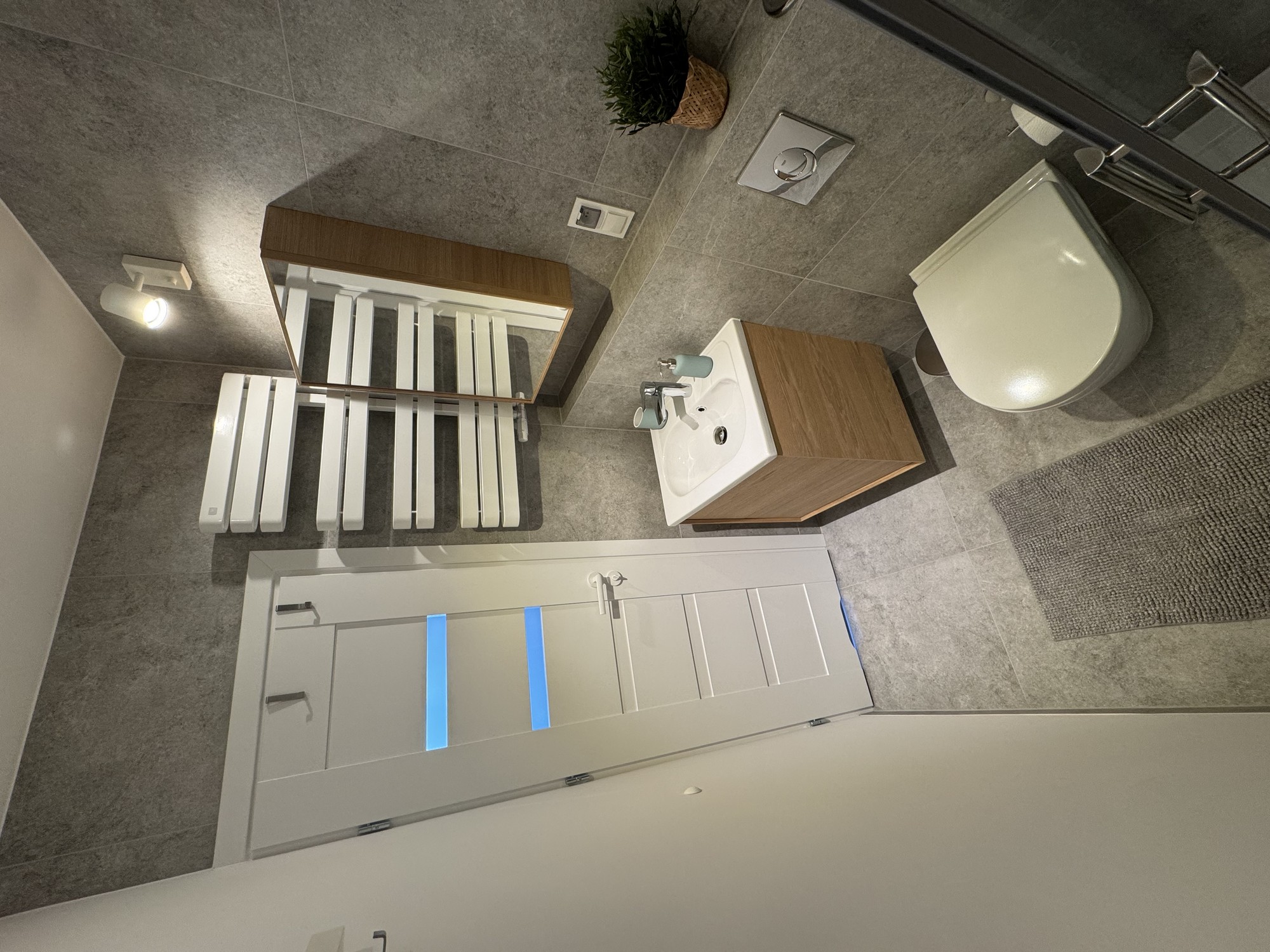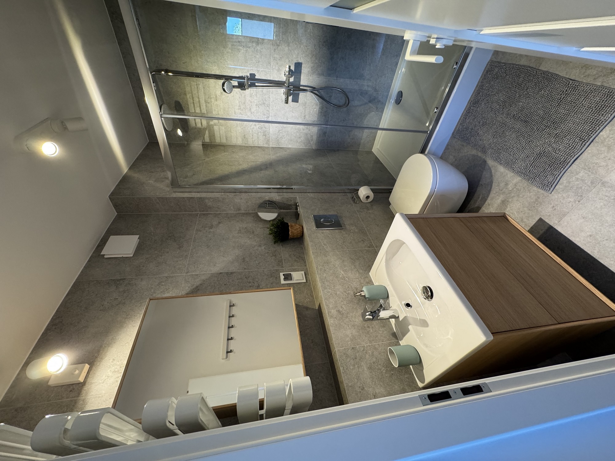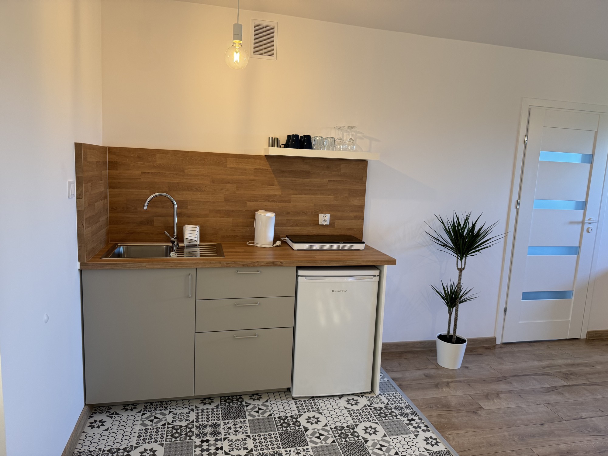 Aneks kuchenny wyposażony jest w płytę indukcyjną, naczynia, sztućce, garnki, lodówkę i czajnik. Łazienka z prysznicem i natryskiem.