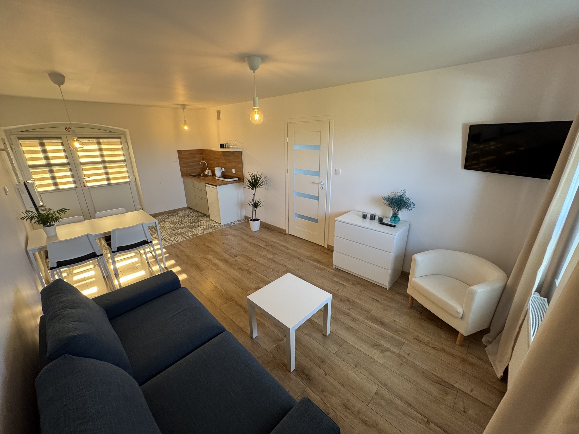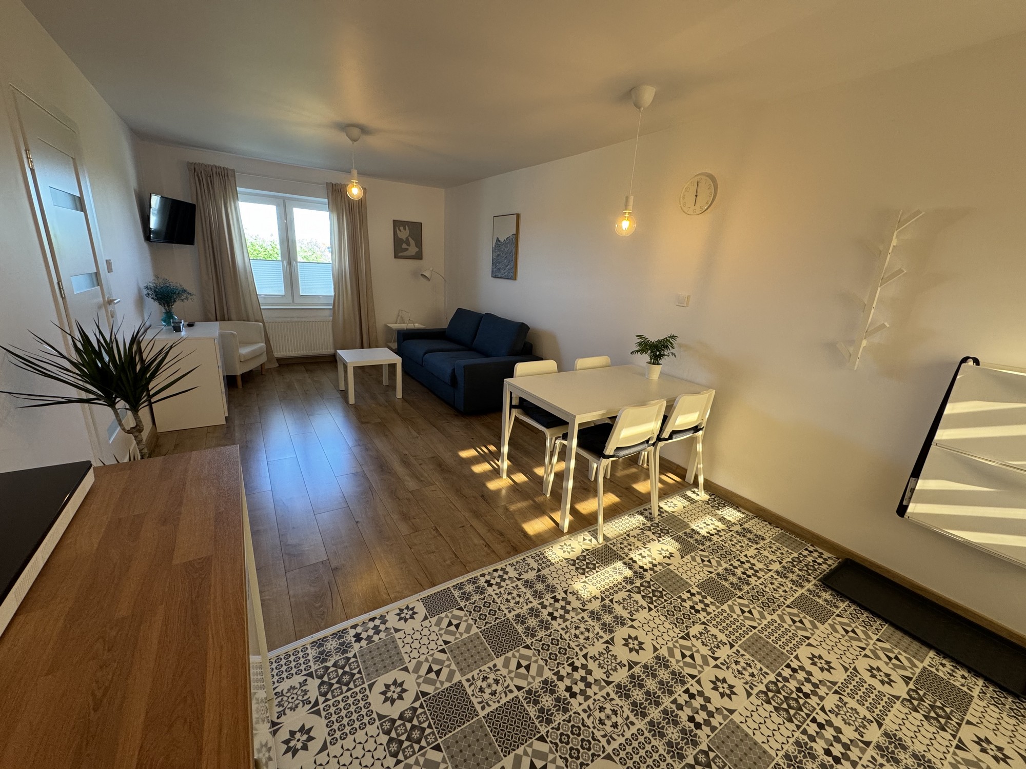 Apartament znajduje się na 1 piętrze i składa się z sypialni z dwoma łóżkami 80x200 cm z możliwością złączenia, salonu z sofą rozkładaną do rozmiaru 140x200 cm.